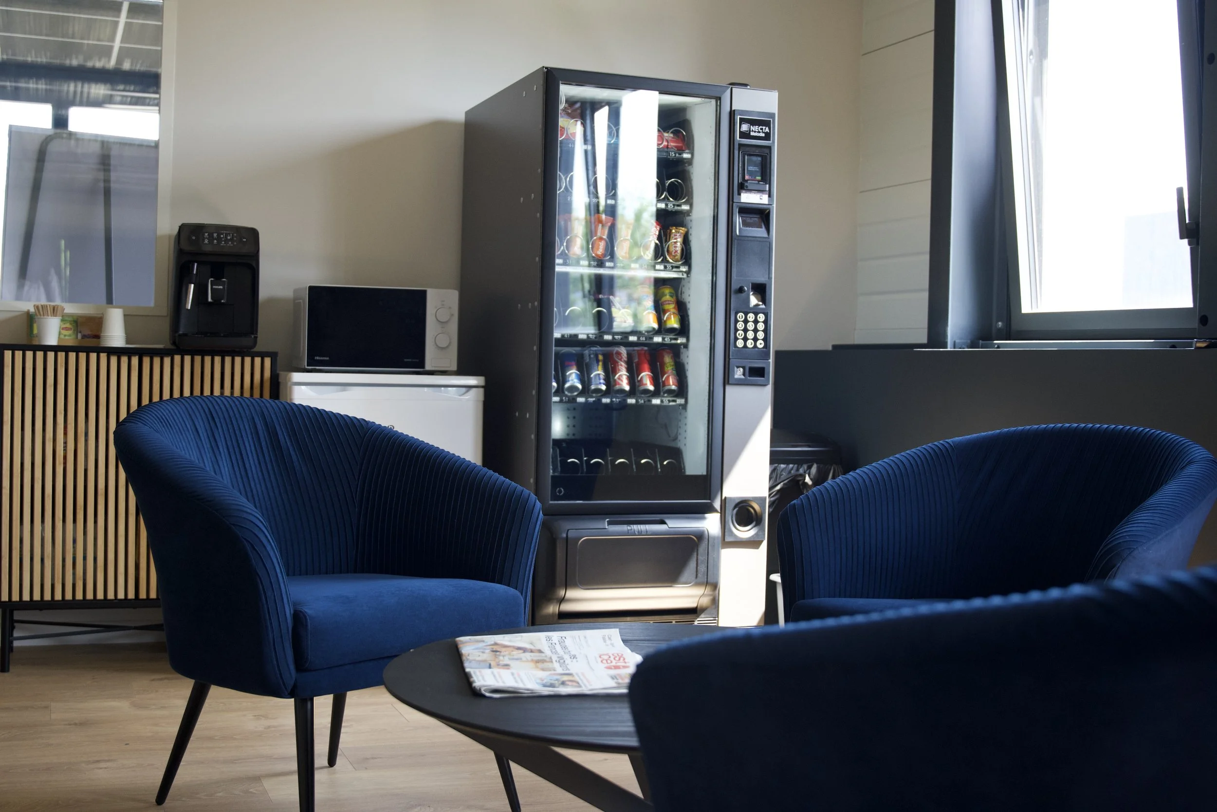 Fauteuils, canapés, café à disposition, télévision : tout est réuni pour travailler, échanger ou simplement se détendre avant ou après votre séance.